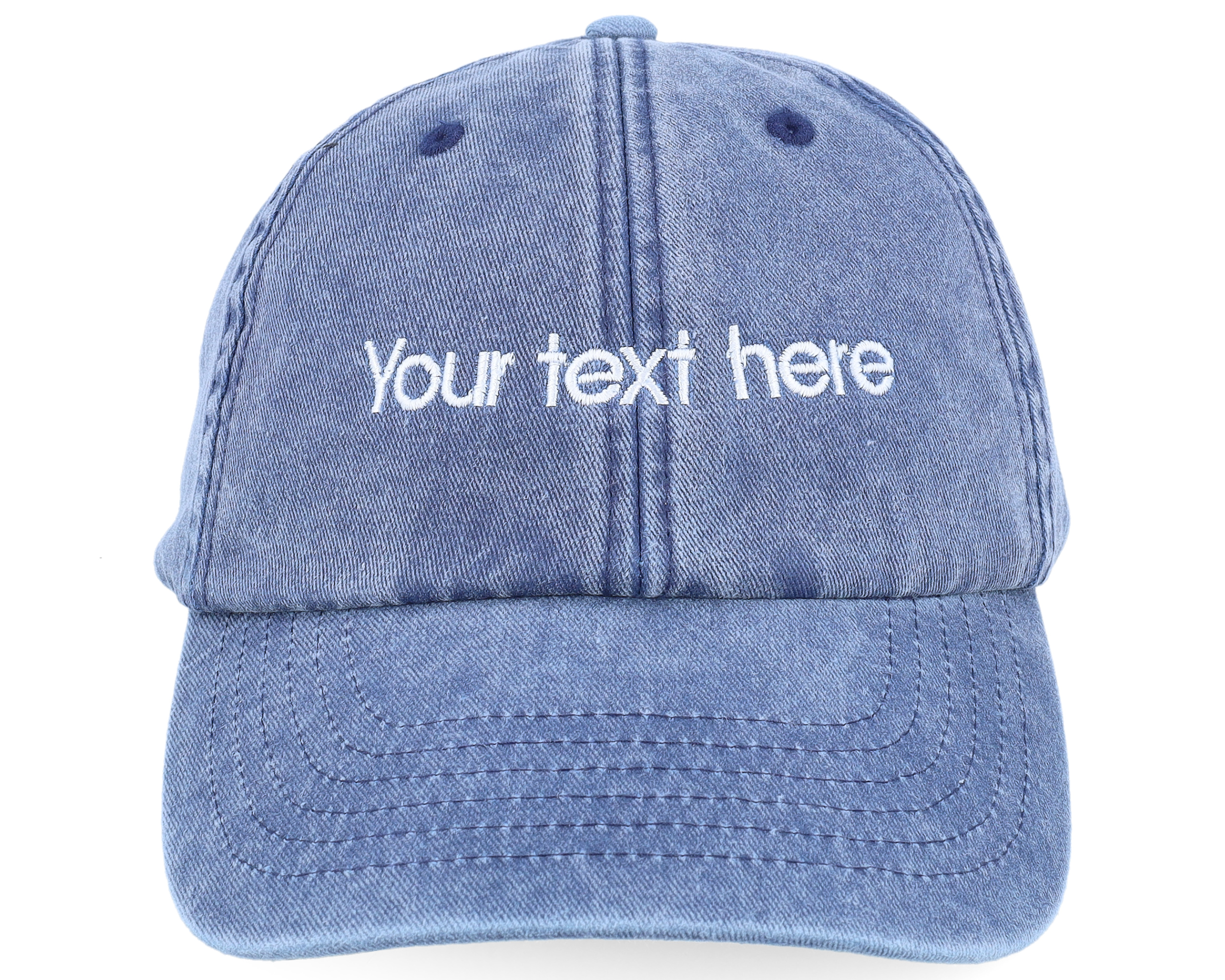 Washed Denim Blue Dad Cap With Embroidery