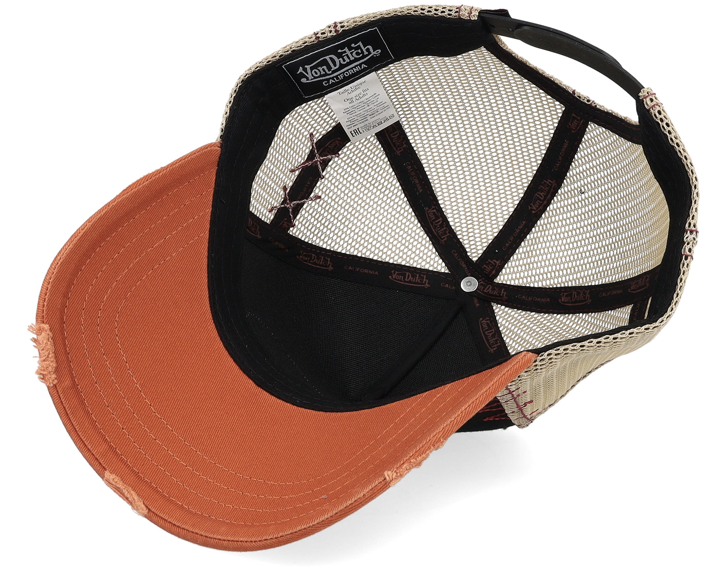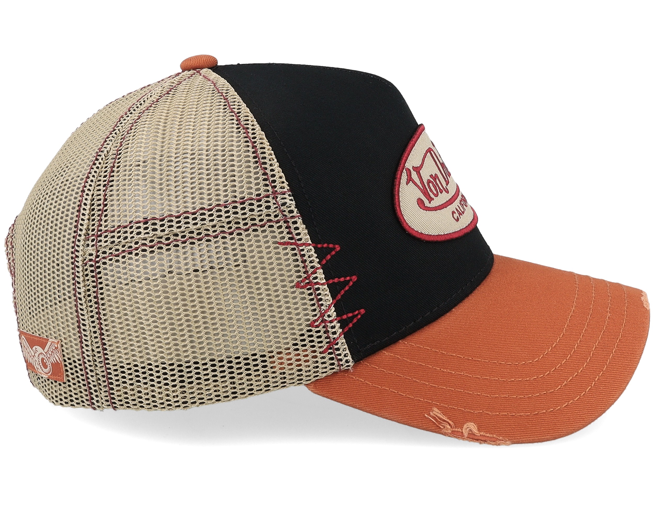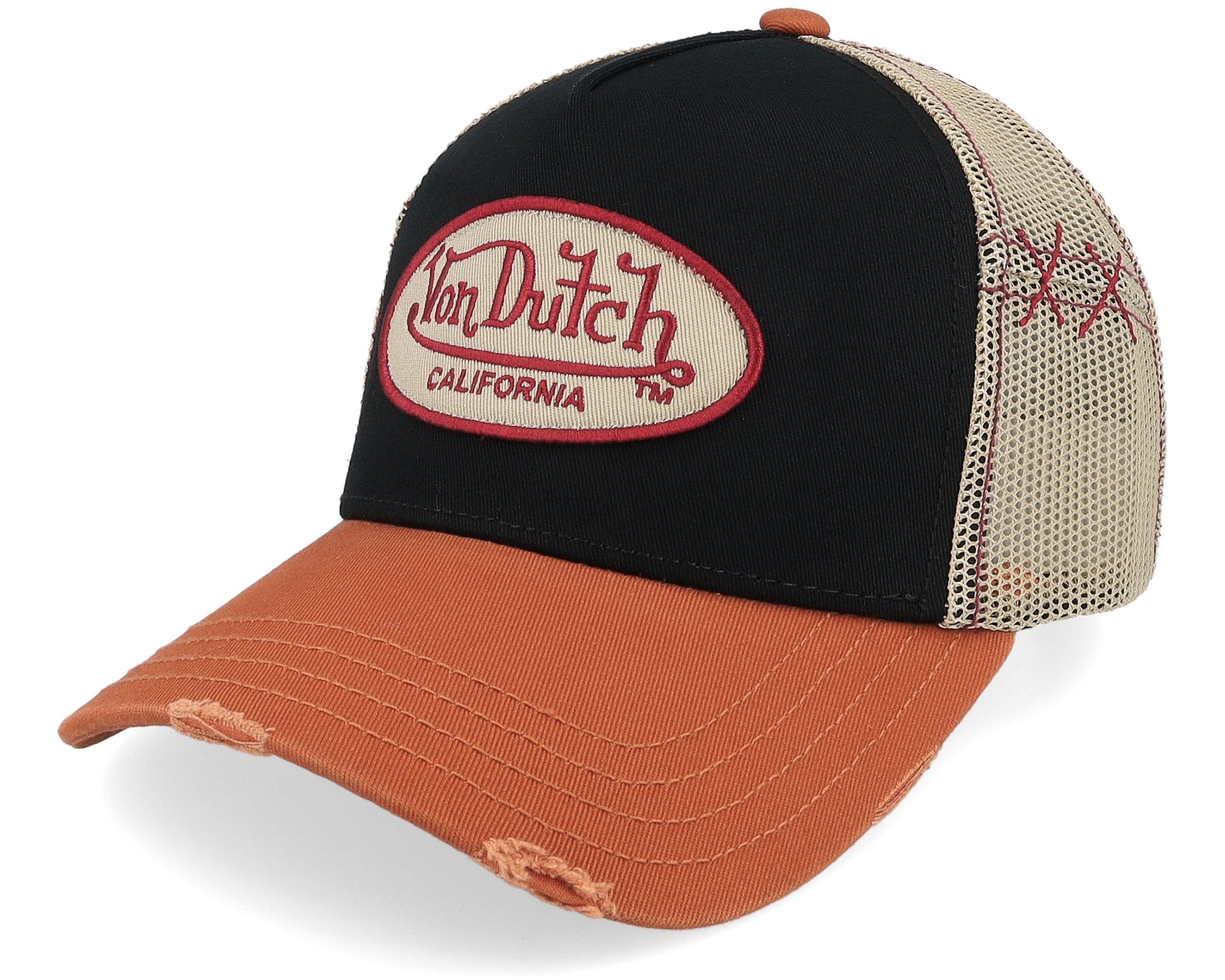 Oval Patch Distressed White/Black/Orange A-Frame Trucker